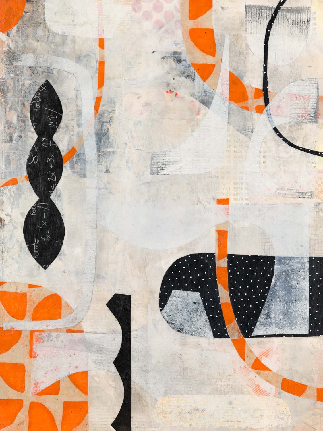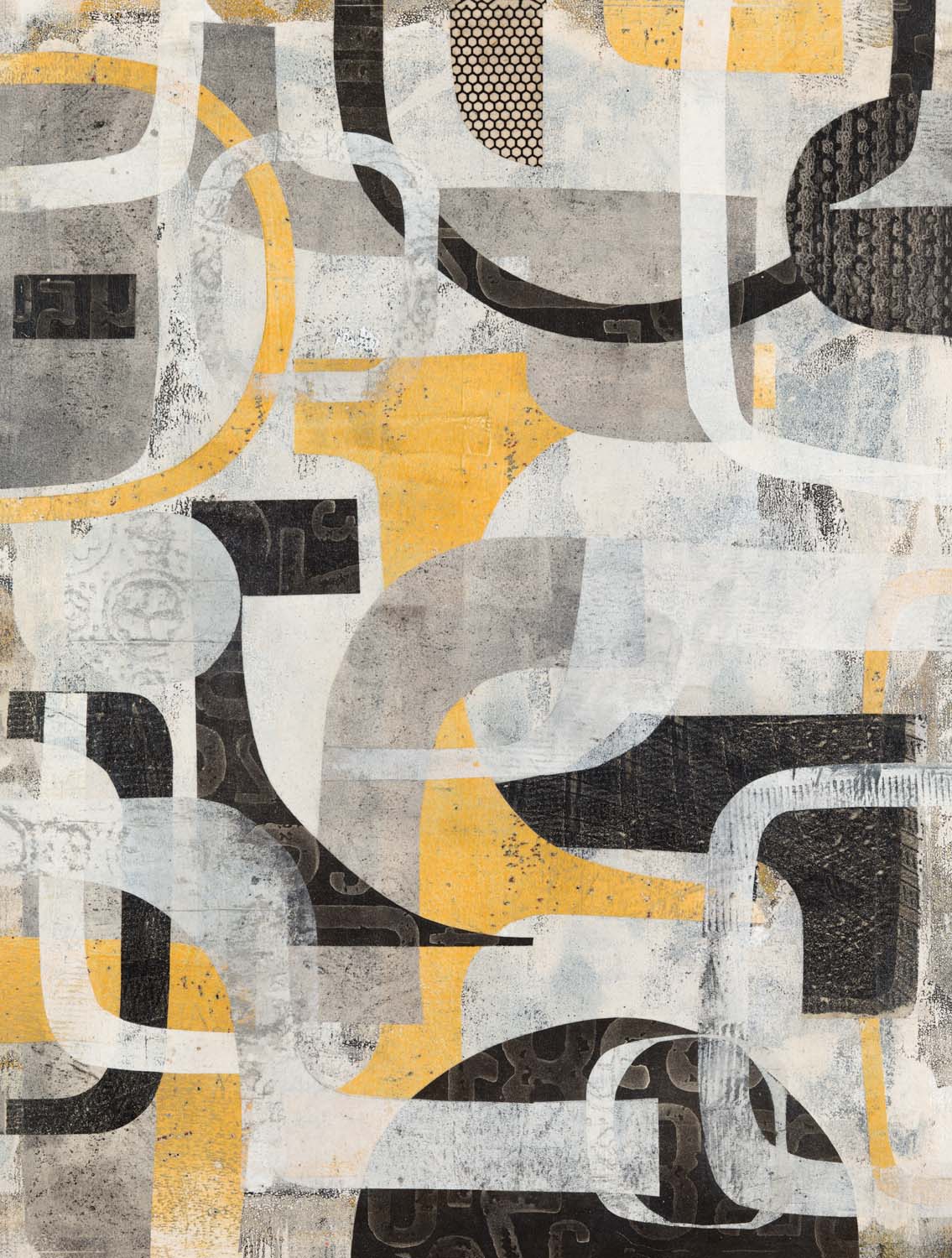 Cohen’s process is improvisational, responding to the materials at hand and intuitively bringing order and structure to the varied elements. Her process begins with line work, a foundation for the many layers of abstracted shapes and forms to follow. Often incorporating transparent layers of hand printed papers, she curates an experience for the viewer to explore what lies beneath the surface, thereby exposing the history of the work. This involves her audience in excavating the mystery and the narrative of her work, seeing beyond the surface, and finding the deeper connections in the many layers.