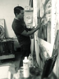 Rojero received his B.F.A. in 1998 and soon started working in Hollywood as a storyboard artist on independent films, and also as a production illustrator for the music video industry. He received an offer from a contemporary artist in San Diego to work in his art studio as an assistant. “Something clicked!” says Rojero. It was his first real exposure to the abstract painting that allows him to be explosive, passionate and free with his creation.